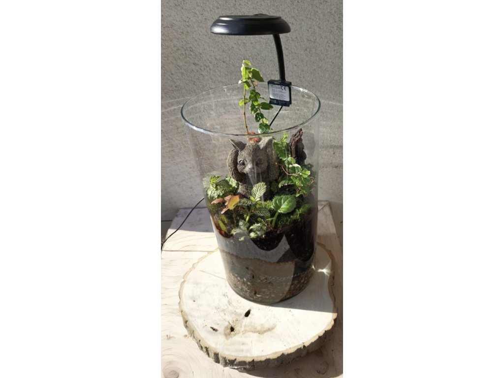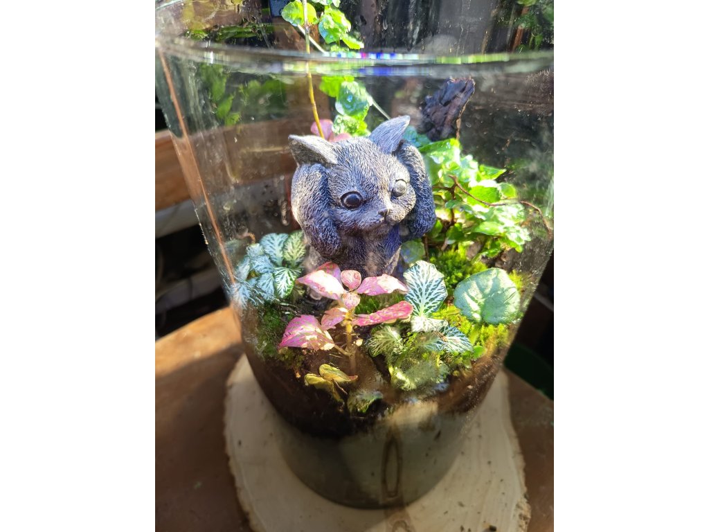 Představte si jedinečný kousek přírody, který oživí každý váš kout – seznamte se s naším „Lesem ve sklenici“. Tento ručně vysazený mini ekosystém v elegantní skleněné nádobě je láskyplně vytvořen tak, aby přinesl úsměv a harmonii do vašeho domova. Uprostřed huňaté zeleně a mechů se líně vyhřívá roztomilá soška kočičky, která stráží vaši denní pohodu.