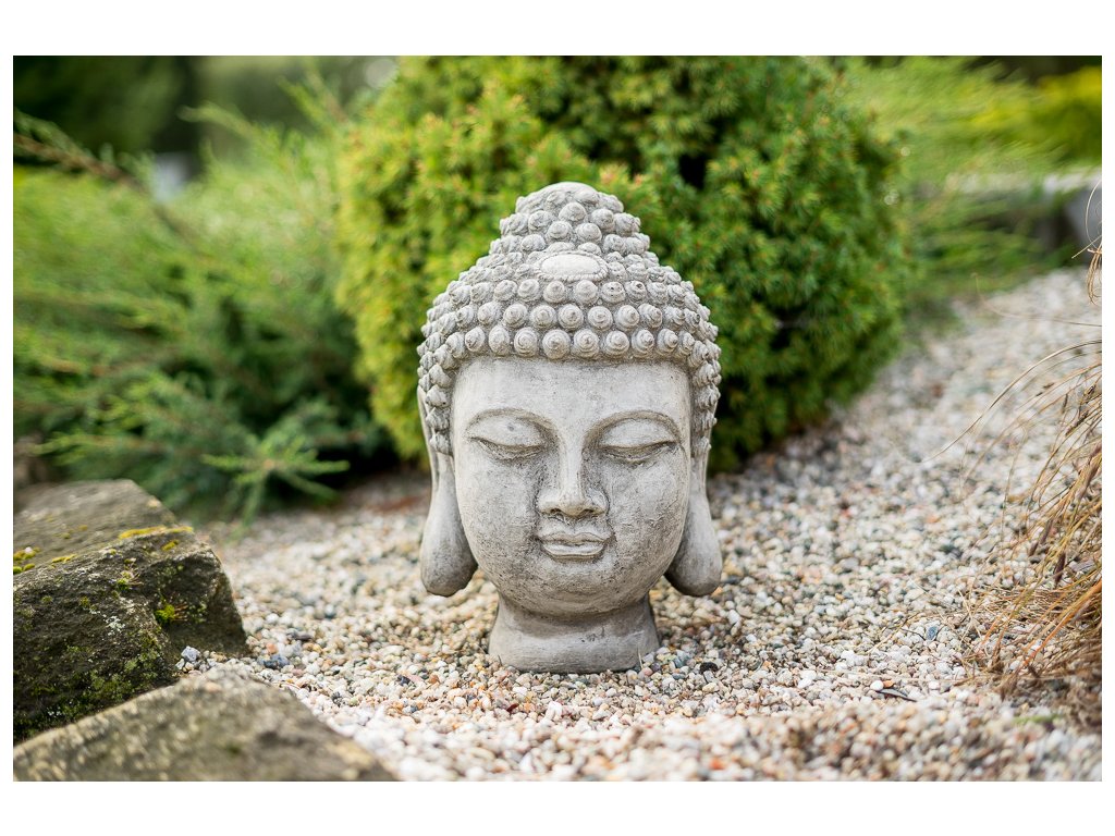 Zahradní dekorace v podobě hlavy Buddhy potěší nejen milovníky orientu a japonských zahrad.
