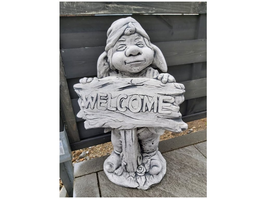 Zahradní betonová dekorace - Trpaslík s cedulí
